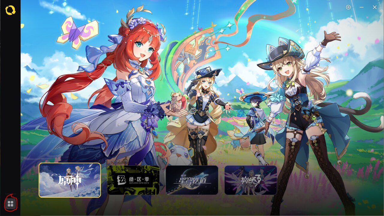 你可以鼠标移动至左下角方框图标,单击鼠标左键,出现的页面中选择米哈游旗下的其他游戏(如:原神、崩坏3、崩坏:星穹铁道、绝区零 等),鼠标移动至你想要下载的游戏,单击鼠标左键以跳转至该游戏页面,鼠标移动至 “获取游戏” 按钮,单击鼠标左键以下载,与下载《原神》的操作是类似的。 (图6 - 选择其他游戏)